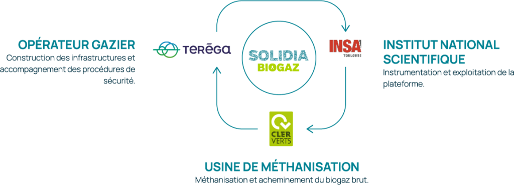 Role of the 3 actors in the operation of the Solidia Biogaz platform